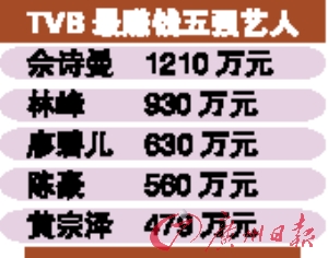 陳豪和廖碧兒也不介意以情侶檔公開露面和合作,兩人收入都在前5。而去年都入前5的郭晉安和胡杏兒,郭晉安因牽掛兒子而減少工作,胡杏兒因沒有代表作,雙雙跌出5強(qiáng)。
