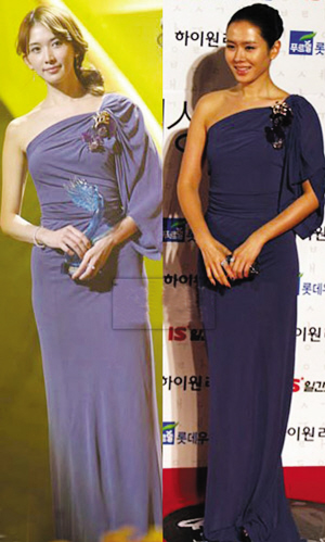 上周五(2月27日)韓國百想頒獎典禮,孫藝珍穿長款紫色禮服出場;而在隔天(28日)的2009上海新娛樂慈善群星會上,林志玲竟穿一模一樣的禮服登場。撞衫常見,而撞得時(shí)間如此緊密,實(shí)在有趣。