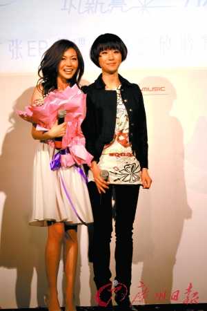 Miumiu鞏新亮——《非誠勿擾》里范偉身邊的那位身材惹火的女秘書。這位初涉銀幕的性感美女昨天在京首發(fā)EP唱片了,而師姐尚雯婕昨天也專門到場捧場。