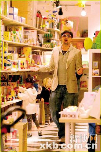 上周末,布拉德·皮特帶著兩個女兒——2歲半的希洛和4歲的扎哈拉在華盛頓購物,度過了溫馨的時光。布拉德·皮特頭戴報童帽,身穿西服搭配牛仔褲,帥氣十足。兩個女兒都戴著墨鏡,酷酷的、可愛的模樣搶足了老爸的風頭?赡苁遣幌胱屌畠涸獾矫襟w的打擾,布拉德·皮特沖著拍照的記者攤手,一臉無奈。兩個小家伙的媽媽安吉麗娜·茱莉此時正忙于拍攝電影《特工鹽》。想必,這一段時間,帶孩子的重任就由皮特一人承擔了。