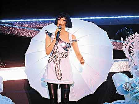 據(jù)香港媒體報道,鄭秀文前晚在上?扇菁{三萬觀眾的虹口體育場舉行一場演唱會,是夜全場爆滿,雖然鄭秀文以唱廣東歌為主,只唱了幾首普通話歌,但觀眾反應(yīng)仍很熱烈。不過在演唱雜錦快歌時,她的耳機突然失靈,在13分鐘的又唱又跳過程中,原來她完全聽不到自己的聲音,唱罷她在臺上說:“我很不開心,耳機壞掉,我完全聽不到自己在唱什么,所以我要重唱這部份!彼挥衷俪偬,完全沒有失準(zhǔn)。