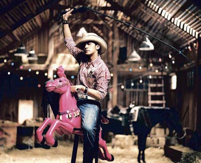 周杰倫的新唱片《我很忙》的封面照片是他騎著粉紅色小木馬、揮動(dòng)皮鞭的照片,表現(xiàn)孩子氣。拍照時(shí)周杰倫更躺在稻草堆上,他累得幾乎熟睡了。
