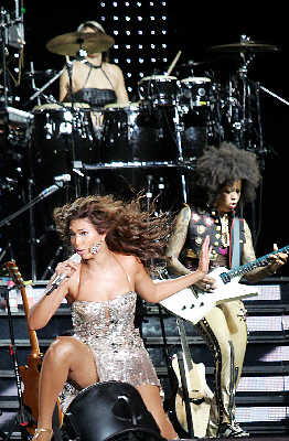 早在下午記者會上,碧昂絲便不斷重復自己對服裝的狂熱,所以,舞臺上的她平均三首歌換一套漂亮的華服。此外,舞臺上許多角落都隱秘地放上了大風扇,以能夠讓她站在舞臺上,也看上去像站在海邊一樣,長發(fā)飄逸,性感美麗。在演出進行到一半的時候,碧昂絲還忽然撕掉銀色短裙,露出與自己肌膚一樣顏色的貼身衣,讓觀眾興奮不已。當然,這個王者需要的不僅是這些,她特別在演唱過程中加了一個大大的休止符,直到觀眾的尖叫聲令自己滿意后,她才心滿意足地重新開口。