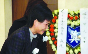 在昨天的遺體告別儀式現(xiàn)場(chǎng),最悲痛的莫過葉凡的姐姐劉女士了,從葉凡病危以來,劉女士一直陪伴在妹妹身邊。心愛的妹妹這么年輕就離家人而去,劉女士一直不能接受這個(gè)現(xiàn)實(shí)?匆娒妹玫倪z體躺在冰冷的水晶棺內(nèi),劉女士不禁失聲痛哭:“你睜開眼睛看看我們大家。 痹谧返繒(huì)進(jìn)行中,劉女士幾次撲倒在妹妹的水晶棺前,而當(dāng)葉凡的遺體從靈堂送往火化館時(shí),劉女士再次撲倒在水晶棺前失聲痛哭。此時(shí)葉凡的丈夫徐希壯也手捧遺像站到劉女士身邊,安慰劉女士說:“別哭了,葉凡也不希望我們這么悲傷,讓她走得開心點(diǎn)吧!”