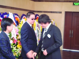 葉凡的丈夫徐希壯昨天一直表現(xiàn)得十分堅(jiān)強(qiáng),可喪妻之痛痛徹心扉,誰又能真正體會(huì)徐希壯此時(shí)的心情呢?葉凡與徐希壯是圈內(nèi)出了名的模范夫妻,徐希壯對(duì)于葉凡無微不至的照顧,一直讓葉凡生活在幸福之中。葉凡得癌癥之后,徐希壯為了不讓葉凡消沉,并沒有告訴葉凡實(shí)情,只是告訴她要好好接受治療。徐希壯一個(gè)人默默忍受了多少痛苦,我們不得而知,而他對(duì)于葉凡那種無私的愛卻讓我們無比敬重。為了掩飾自己的悲傷,徐希壯昨日特意戴上了墨鏡,一邊答謝前來參加追悼會(huì)的友人,一邊偷偷地抹去自己藏在黑色鏡片下的眼淚,在他摘下墨鏡的一瞬間,記者看見他那已經(jīng)哭得紅腫的雙眼。當(dāng)他手捧葉凡的遺像,默默地走到葉凡的遺體旁時(shí),他深深地嘆了口氣,說道:“一路走好!”而當(dāng)他目送葉凡的遺體送往火化館時(shí),一行眼淚順著墨鏡的邊緣慢慢地流了下來。