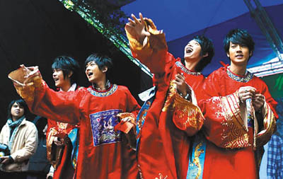 中新網(wǎng)2月4日電 據(jù)臺(tái)灣聯(lián)合報(bào)報(bào)道,臺(tái)灣偶像團(tuán)體飛輪海發(fā)片銷售創(chuàng)佳績(jī),4人昨天變身成財(cái)神爺,發(fā)送紅包給歌迷,近千名粉絲爭(zhēng)搶紅包,把飛輪海全身摸透透。歌迷太過熱情,辰亦儒的手臂也被抓到見紅,他在簽名會(huì)途中突然感到頭暈?zāi)垦,臉色瞬間慘白,活動(dòng)一度中斷。