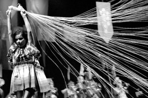演出期間,比約克一度化身“蜘蛛女”,身著五彩斑斕的演出服展現(xiàn)“吐絲”一幕。而演唱會的下半部分簡直是在比約克和歌迷的熱歌熱舞中進(jìn)行的。圖/陳強華