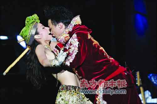 當(dāng)晚舞蹈場(chǎng)面不多,與美艷性感的女郎熱舞,陳奕迅賣力交足功課。