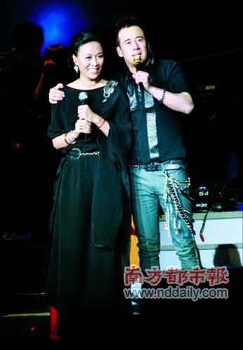 內地天后那英則上臺親自為楊坤做嘉賓,并與楊坤對唱了一曲《月亮可以代表誰的心》。因為生女兒已經(jīng)暫別歌壇一段日子的那英,被楊坤現(xiàn)場大開玩笑:“我們都知道那英很忙的。當年孫楠開演唱會,請她,結果她懷孕了。后來滿文軍開演唱會又請她,結果她又懷孕了”。他笑稱這一次請到那英是因為自己早在半年前就提前打聽了那英的“生產計劃”,在得到“那英暫無再度造人”的可喜答復后,才即下了預約單。