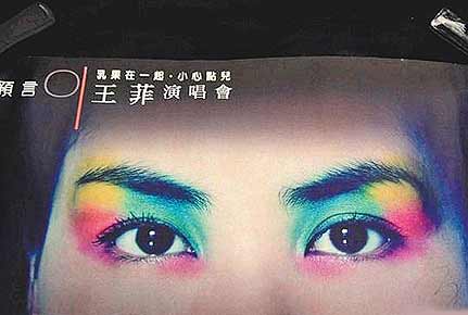 據(jù)臺灣媒體報道,范范也解釋,王菲的眼妝是在上眼皮,她的五彩眼妝則在眼側(cè),是呼應(yīng)演唱會座位分知己、好姐妹、哥兒們、新朋友、左鄰右舍等5區(qū)。