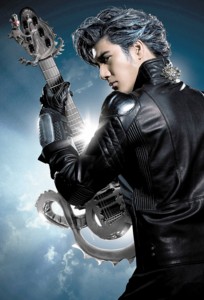 為了實現(xiàn)未來世界感,王力宏日前還斥資打造了 “秘密武器”,特別邀請了曾經(jīng)幫U2設(shè)計吉他的愛爾蘭大師Alis鄄tair設(shè)計打造了超炫的電吉他。這把電吉他價值兩萬歐元,力宏特別給它取了個響亮的名字叫做Bahamut(巴哈姆特)。屆時,他將手拿音符龍造型的電吉他,頭頂金屬藍(lán)發(fā),搖身一變?yōu)橐魳烦。王力宏坦言,他將用最擅長的音樂作為自己的拿手“武器”,把震撼帶到全世界。