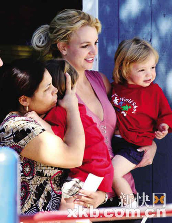 10月17日,布蘭妮在老爸和保姆的陪同下接兩個(gè)兒子放學(xué)。身穿粉色低V長(zhǎng)裙的布蘭妮看上去精神奕奕,與以前的奢靡形象全然相反。欲東山再起的她決定首先從做個(gè)好媽媽開始,改變自己在fans心中的惡劣形象。