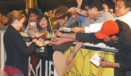 凱莉·米洛在機(jī)場為歌迷簽名。
