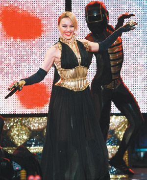 中新網(wǎng)12月5日電 澳洲天后凱莉·米洛(Kylie Minogue)首度赴臺開唱,以“女神”之姿降臨中山足球場舞臺,性感歌舞,征服了現(xiàn)場1萬6,000名觀眾。臺灣“聯(lián)合報(bào)”報(bào)道,當(dāng)晚,凱莉一身金色束腰黑性感洋裝現(xiàn)身,釋放全場熱情,巨星魅力非凡。