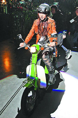 昨演唱完安可曲后,她特地戴上安全騎士帽,以皮衣造型騎機(jī)車(chē)回舞臺(tái),由于該機(jī)車(chē)當(dāng)年由鄧麗君代言,是商家珍藏的骨董,價(jià)值約40萬(wàn)元,這次特地為演唱會(huì)出借,讓她騎車(chē)時(shí)相當(dāng)小心翼翼。