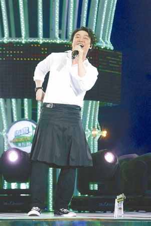2009“雪碧中國原創(chuàng)音樂流行榜”日前在京揭曉,勇奪5項(xiàng)大獎的陳奕迅穿著裙子亮相,他稱自己近年都是自己做造型師,裙子是逛街時偶然買回來的,想體會一下當(dāng)女生感覺。