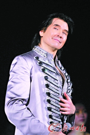 前晚,備受期待的"我心飛翔·2009費(fèi)翔金曲演唱會(huì)"在廣州中山紀(jì)念堂舉行。雖然事先就知道當(dāng)晚會(huì)有幾位嘉賓串場(chǎng),但不到兩個(gè)小時(shí)的演唱會(huì)中,費(fèi)翔一共只唱了一個(gè)小時(shí)。這個(gè)曾在美國(guó)百老匯打拼多年的老牌偶像,一首載歌載舞的《冬天里的一把火》之后已經(jīng)氣喘吁吁,他自嘲說“真的是上歲數(shù)了”。