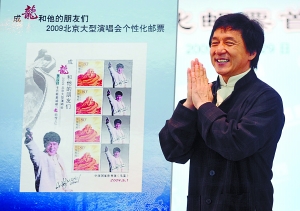 據(jù)悉,成龍個(gè)性化郵票和紀(jì)念郵冊(cè)現(xiàn)已在北京各主要郵政支局售賣,去鳥巢觀看“成龍和他的朋友們”演唱會(huì)的觀眾也可在鳥巢的郵局購買郵票和郵冊(cè)。