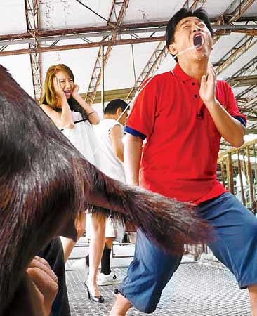 中新網(wǎng)10月25日電 臺灣媒體報道,吳宗憲(右)跟女星Linda日前在臺灣南部牧場錄臺視《綜藝大勝戰(zhàn)》,被制作單位要求現(xiàn)場喝羊乳,看到熱騰騰的羊乳直接“射”過來,Linda嚇到花容失色,反而是吳宗憲自得其樂,不僅歪嘴接奶,還喝到溢奶。