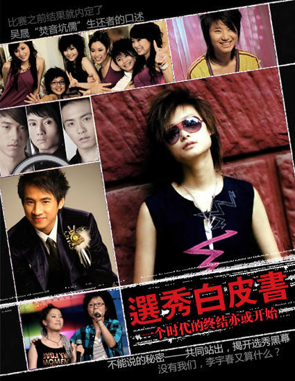 桑雪作為中國第一個奧運冠軍并轉(zhuǎn)型歌手,出雜志后,也成為媒體焦點,說明大眾對于奧運事件的熱衷程度。相反,對于中國第一本盤點娛樂圈年度大事件的《選秀白皮書》,文章中近年來娛樂圈領(lǐng)軍人物李宇春、張靚穎等都列入其中,反而在明星出版銷量中排名最后,充分說明,大眾對于選秀事件的疲憊與麻木,大眾的眼睛需要綠色的屏障作保護(hù),人們需要的是新鮮的事物來刺激生活。