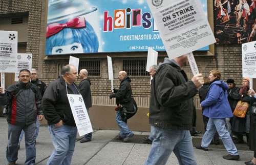 報(bào)道稱,這些負(fù)責(zé)舞臺(tái)布景和儀器的舞臺(tái)人員在劇院前設(shè)置了糾察線。經(jīng)過三個(gè)月談判后,戲劇制片人和舞臺(tái)人員工會(huì)沒法就工資和工作條件達(dá)成共識(shí),于是舞臺(tái)人員決定采取工業(yè)行動(dòng)。