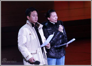 今年春晚主持人的出場方式與眾不同,記者在現場看到,開場歌舞《飛向春天》跳到一半時,朱軍、董卿、李詠、周濤、張澤群、劉芳菲6位主持人“從天而降”,用特殊的方式給全國觀眾拜年。如果說往年“4+2”的主持人模式讓觀眾有些“審美疲勞”,那么白巖松、畢福劍的加入無疑增添了新看點。一貫嬉皮笑臉的畢福劍要介紹《星光大道》的年度總冠軍、盲人小伙楊光出場。平日里喜好板臉說事的白巖松要采訪王寶強,引出《農民工之歌》。不過,將在今年春晚上一人表演兩個節(jié)目的王寶強并沒有參加聯排。