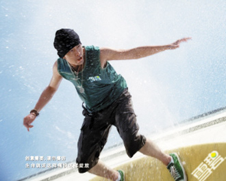 最近,周杰倫為拍攝新廣告,牽手3位跳水新星吳敏霞、王峰、陳若琳,上演了一幕“另類”跳水秀。這次周杰倫也有份參與廣告創(chuàng)意,例如片中一個池壁沖浪的鏡頭,完全沒有滑板經驗的他,在拍攝過程中居然可以擺出滑板碰鼻的專業(yè)動作。不過說到跳水美態(tài),周杰倫自然比不上吳敏霞,她一出手便震撼全場:干凈利落的轉身,如海豚般輕盈地一躍就完成整個拍攝。