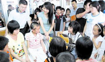 日前,許飛來(lái)到湖南省人民醫(yī)院,看望在這里的幾十名從四川災(zāi)區(qū)轉(zhuǎn)來(lái)醫(yī)治的小朋友們。