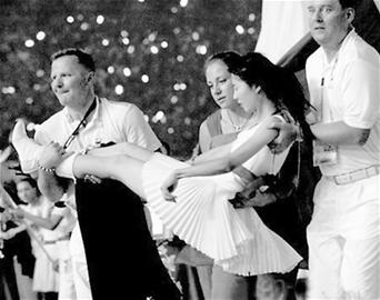 值得一提的是,當(dāng)晚,有位白衣姑娘因透支體力而昏厥。在網(wǎng)上,一張照片記錄了這一幕:一位白衣MM不省人事,左手因抽筋痙攣而僵硬。讓人感動的是,這位姑娘暈倒在地后,第一時間抱起她的,是一位美麗的外國女運(yùn)動員,兩旁還有兩位身穿白衣的外籍工作人員,一人托住她的腳,一人扶住她的頭,面露焦急,奔跑著,將姑娘送下場。這一幕,感動了無數(shù)網(wǎng)友,紛紛感謝這3位外國友人的熱心,并急切地搜索著他們的資料。“真誠的國際友誼!為這樣的和諧、友好鼓掌!”有網(wǎng)友在網(wǎng)上發(fā)了無數(shù)個“謝謝”來表達(dá)無法表達(dá)的謝意。