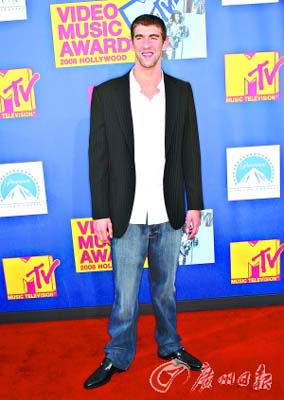 在北京奧運(yùn)會(huì)上一舉奪得8枚金牌的美國游泳運(yùn)動(dòng)員菲爾普斯昨日也出席了第25屆MTV音樂錄影帶大獎(jiǎng)?lì)C獎(jiǎng)禮;謴(fù)平常裝扮的菲爾普斯雙腿顯得出奇的短,異于常人的比例也印證了他“天生水怪”之名。