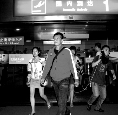 “靖哥哥”黃日華是從哈爾濱飛來重慶的,飛機比預(yù)計時間早到了10多分鐘,但人群漸漸散去都還未見他的蹤影。30分鐘之后,身穿紅色運動服、牛仔褲,白色球鞋的黃日華出現(xiàn)在到達大廳,沒有戴帽子和墨鏡,小麥膚色的“靖哥哥”顯得很低調(diào)。有記者試圖上前訪問,酷酷的黃日華只顧向前走并不作答。期間,有不少路人認出了他,都紛紛掏出手機猛拍,更有女生冒雨追趕希望能跟他合影。