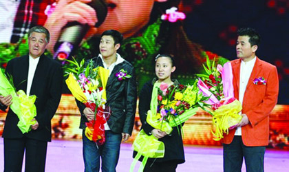 在頒獎環(huán)節(jié),趙本山終于上了臺,他帶著小沈陽、毛毛和畢福劍一起捧回了語言類節(jié)目的一等獎。在談獲獎感言時,趙本山說:“今年春晚對我來說最關(guān)鍵!彼X得,最關(guān)鍵的原因有兩個,一個是時間緊,“這個小品是在離春節(jié)12天的時候才弄出來的。第一個小品不夠好被斃了,我感謝斃了第一個小品,不然就沒現(xiàn)在這個了!绷硗庖粋是徒弟火了,“最興奮的是,我兩個徒弟站在舞臺上了!壁w本山笑著說。
