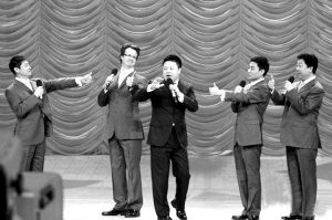 昨晚,央視2009年元宵晚會如期播出。由于是錄播,所以“我最喜歡的春節(jié)聯(lián)歡晚會節(jié)目”評選也已提前揭曉,《不差錢》拿下小品類一等獎,劉謙也奪得曲藝類一等獎(本報昨日已報道)。在元宵晚會上,小沈陽和劉謙的名字反復(fù)被眾多明星提及,而劉謙、朱軍更是模仿小沈陽的音調(diào),引來陣陣笑聲。