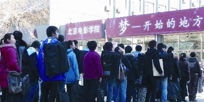 在影視界,“中戲”、“上戲”、“北電”呈三足鼎立之勢,其地位無人可以撼動,人稱“明星搖籃”。近年來這三所學(xué)校藝術(shù)考試持續(xù)升溫,報考人數(shù)屢創(chuàng)新高。在北電,表演專業(yè)一直被認為是最難考的專業(yè),雖然今年的招生人數(shù)由往年的30人增加到75人,報名人數(shù)卻高達4234人,淘汰率為98.2%。即便知道面臨著如此殘酷的競爭,可那些懷揣著明星夢想的俊男靚女們,仍不遠萬里,從五湖四海為了一個共同的目標走到了一起,懷著明星夢擠上這座獨木橋。