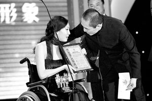 第二屆演藝名人公眾形象滿意度調(diào)查發(fā)布盛典昨晚在京舉行。曾因排演2008年北京奧運(yùn)會(huì)開幕式受傷致殘的劉巖,獲得了中國(guó)年度舞蹈最佳表現(xiàn)女演員獎(jiǎng)。