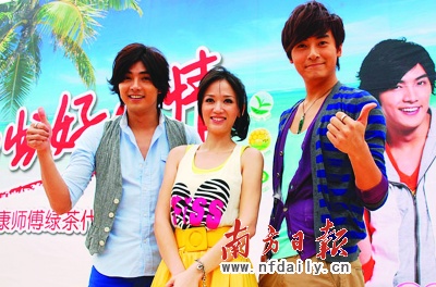 因主演《惡作劇之吻》、《命中注定我愛你》、《惡魔在身邊》等偶像劇而走紅的臺(tái)灣人氣偶像鄭元暢、陳喬恩、賀軍翔日前現(xiàn)身廣州出席某飲料代言活動(dòng)。