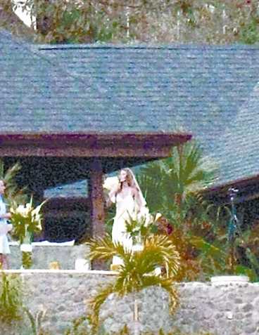 攝影師冒著“生命危險(xiǎn)”拍下的婚禮現(xiàn)場(chǎng)圖。依稀可見(jiàn)身穿白紗的吉賽爾·邦辰。據(jù)報(bào)道,保鏢們?cè)凇笆乃馈北Pl(wèi)主人時(shí),新娘子對(duì)婚禮上的“槍?xiě)?zhàn)”一無(wú)所知。