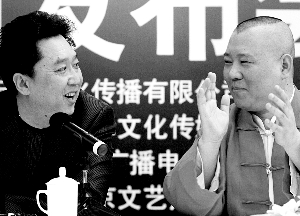 只要有郭德綱在的發(fā)布會(huì),記者們都不愁沒(méi)內(nèi)容寫(xiě),因?yàn)楣戮V會(huì)把說(shuō)相聲的技能也帶到會(huì)上來(lái),于是每次記者招待會(huì)就變成“逗樂(lè)會(huì)”,無(wú)論媒體拋出什么樣的問(wèn)題,郭德綱都會(huì)妙語(yǔ)連珠給予回應(yīng)。
