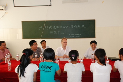 中新網(wǎng)7月15日電 據(jù)菏澤市僑聯(lián)消息,7月14日,德國中國教育資助工程協(xié)會(huì)主席托馬斯·費(fèi)爾和中國駐法蘭克?傤I(lǐng)館前領(lǐng)事譚華訓(xùn)一行,在菏澤市僑聯(lián)副主席盧文朋、張忠的陪同下,到牡丹區(qū)安興鎮(zhèn)中學(xué)和鄄城縣彭樓鎮(zhèn)兩所中學(xué)進(jìn)行助學(xué)考察。