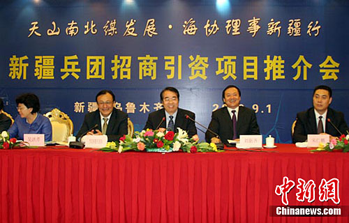 中新網(wǎng)烏魯木齊9月2日(孫亭文)9月1日,來自世界各地近180位中國海外交流協(xié)會海外顧問、常務(wù)理事、理事等參加了“新疆兵團招商引資項目推介會”,國務(wù)院僑辦副主任許又聲出席。本次活動是國務(wù)院僑辦和中國海外交流協(xié)會共同主辦的“天山南北謀發(fā)展·海協(xié)理事新疆行”活動中的其中一項。