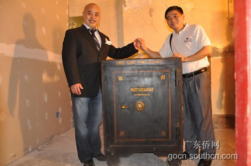 9月17日當?shù)貢r間下午一點,甫抵達舊金山,訪問團在旅美陽和總會館主席盧偉棠、旅美人和會館主席彭書城、三邑總會館主席暨展圖等僑領(lǐng)的陪同下,馬不停蹄地拜訪了旅美人和會館、旅美陽和會館、五洲致公堂,與僑領(lǐng)座談交流,宣傳推介廣東華僑博物館,并考察會館建筑、歷史圖片和文獻。五洲致公堂總主席周國祥表示,今后要帶社團的年輕一代參觀廣東華僑博物館,學(xué)習(xí)了解華僑歷史,并希望該會收藏的孫中山先生當年在舊金山從事革命活動使用過的椅子、辦公臺和籌款用的保險柜、以及一些較有歷史價值的圖片、實物等可以在廣東華僑博物館展示。陽和總會館劉應(yīng)同顧問當場捐贈了一張其父親珍藏1945年董必武隨聯(lián)合國代表團到訪舊金山的珍貴照片。其他僑領(lǐng)們紛紛表示,會積極協(xié)助廣東華僑博物館收集華僑實物和資料。