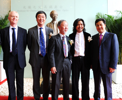中新網(wǎng)9月29日電 據(jù)寧夏僑聯(lián)消息,9月27日,香港中文大學(xué)舉行了高錕雕像揭幕典禮,由諾貝爾物理學(xué)獎高錕伉儷、校長沈祖堯教授及著名雕塑家吳為山教授主禮,中國僑聯(lián)副主席朱奕龍應(yīng)邀參加揭幕儀式,與中大校領(lǐng)導(dǎo)、教授以及人文學(xué)者等師生代表近百余人共襄盛舉。
