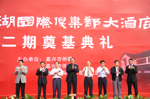 中國(guó)僑聯(lián)副主席、浙江省僑聯(lián)主席王成云、嘉興市委常委、市紀(jì)委書記馮志禮等領(lǐng)導(dǎo)以及市級(jí)有關(guān)部門、南湖區(qū)委、區(qū)政府、南湖國(guó)際俱樂部二期項(xiàng)目投資方、建設(shè)單位、市多家媒體等近100人出席了奠基儀式。
