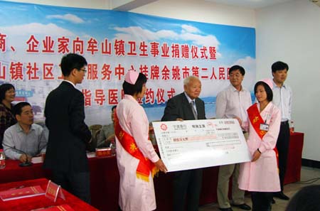 魏紹相先生祖籍余姚市牟山鎮(zhèn),早年離鄉(xiāng)赴港經商,目前為香港恒豐喉業(yè)有限公司董事長。改革開放后,尤其是上世紀九十年代以來,魏先生幾乎每年回故里省親訪友,并慷慨解囊,其捐贈項目之多、捐贈地域之廣,是余姚市海外僑胞、港澳同胞熱心捐贈事業(yè)的典范。此次,魏紹相先生又參加了“牟山鎮(zhèn)僑商、企業(yè)家向衛(wèi)生事業(yè)捐贈儀式”和“余姚市人民醫(yī)院‘魏紹相先生愛心捐贈簽約儀式’”。