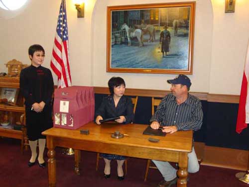 10月14日,蘇州園林設(shè)計院與美國德州葡萄藤市環(huán)境與文化認(rèn)識協(xié)會(SECA),簽訂了在葡萄藤市“夢花園”中建設(shè)“中國花園”的合作協(xié)議書。當(dāng)晚,葡萄藤市舉行隆重晚宴,歡迎蘇州考察團(tuán)一行。葡萄藤市市長塔特在致詞中說,夢花園是讓世界分享東方文化,代表了東方文化的天人合一的和諧,世界不同文化在大自然里達(dá)到完美統(tǒng)一。蘇州海外交流協(xié)會會長顧伯銘在講話中說,蘇州深感榮幸參與夢花園工程,把中國園林介紹給世界,蘇州園林設(shè)計院將精心設(shè)計全力支持,讓中國園林再次在美國建造成功。