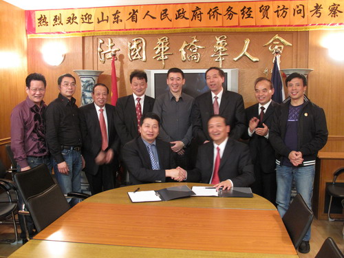 雙方一致同意,今后進(jìn)一步加強信息交流,互相支持,開展實質(zhì)性合作。山東省海外交流協(xié)會副會長史進(jìn)與華僑華人會會長陳勝武在友好關(guān)系協(xié)議書上簽字。