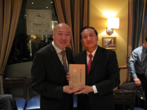 在法國華僑華人會會所,訪問團與華僑華人會會長陳勝武等僑領(lǐng)進(jìn)行了座談,山東省僑辦副主任史進(jìn)對長期以來華僑華人會對山東僑務(wù)工作的支持和經(jīng)濟發(fā)展的貢獻(xiàn)表示敬意和贊賞。