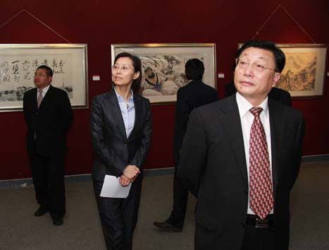 王琳在致辭中說,“祖國萬歲——慶祝新中國成立60周年華人書畫展暨山東僑資企業(yè)成就展”大型宣傳展覽活動,是山東僑界的一項盛事,也是向新中國60華誕和全運會成功舉辦的獻(xiàn)禮。此次展覽展示的丹青墨寶,主要是西班牙、荷蘭、意大利、奧地利、法國、德國、美國、日本等國家華僑華人書畫家和國內(nèi)知名書畫藝術(shù)家的代表作,具有很高的藝術(shù)造詣和感染力。