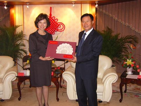 金秋十月的鮀城,山青水秀,風(fēng)光迷人,給首次蒞汕的趙小蘭女士一行留下美好的印象。10月23日晚,趙小蘭接受汕頭市委副書記鄧大榮、副市長(zhǎng)周鎮(zhèn)松等市領(lǐng)導(dǎo)的會(huì)見時(shí),稱汕頭是一座美麗的海濱城市,從短短一天的參觀中,可以看出汕頭的工業(yè)非常發(fā)達(dá),環(huán)境保護(hù)工作做得非常好,希望汕頭發(fā)展得越來(lái)越好。