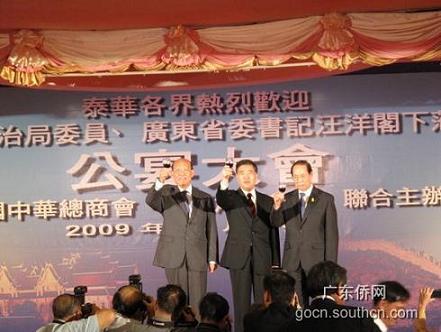 汪洋書記回顧了歷史上各個時期泰國華僑華人對中國革命和建設(shè)的貢獻(xiàn)。他說,廣大旅居泰國的華僑華人,充分發(fā)揚(yáng)中華民族勤勞勇敢,艱苦奮斗的優(yōu)秀品質(zhì)和聰明才智,白手起家,克勤克儉,歷盡艱辛,經(jīng)過不懈努力,在政治、經(jīng)濟(jì)、文化、教育等領(lǐng)域取得了輝煌的成就。廣大僑胞的歷史是一部忠貞不渝的愛國史,廣大僑胞的歷史也是一部與所在國民眾和睦相容的友好史,多年來廣大旅泰僑胞在開拓創(chuàng)業(yè)的同時,不忘回饋社會,積極參與當(dāng)?shù)亟ㄔO(shè),與泰國人民共存共榮,已經(jīng)和諧地融入了當(dāng)?shù)氐纳鐣瑸樘﹪?jīng)濟(jì)、文化的發(fā)展和社會進(jìn)步做出了重要的貢獻(xiàn),得到了泰國人民的贊許和肯定,并為中泰兩國的友好往來與交流合作奠定了重要的基礎(chǔ),發(fā)揮了橋梁的作用。